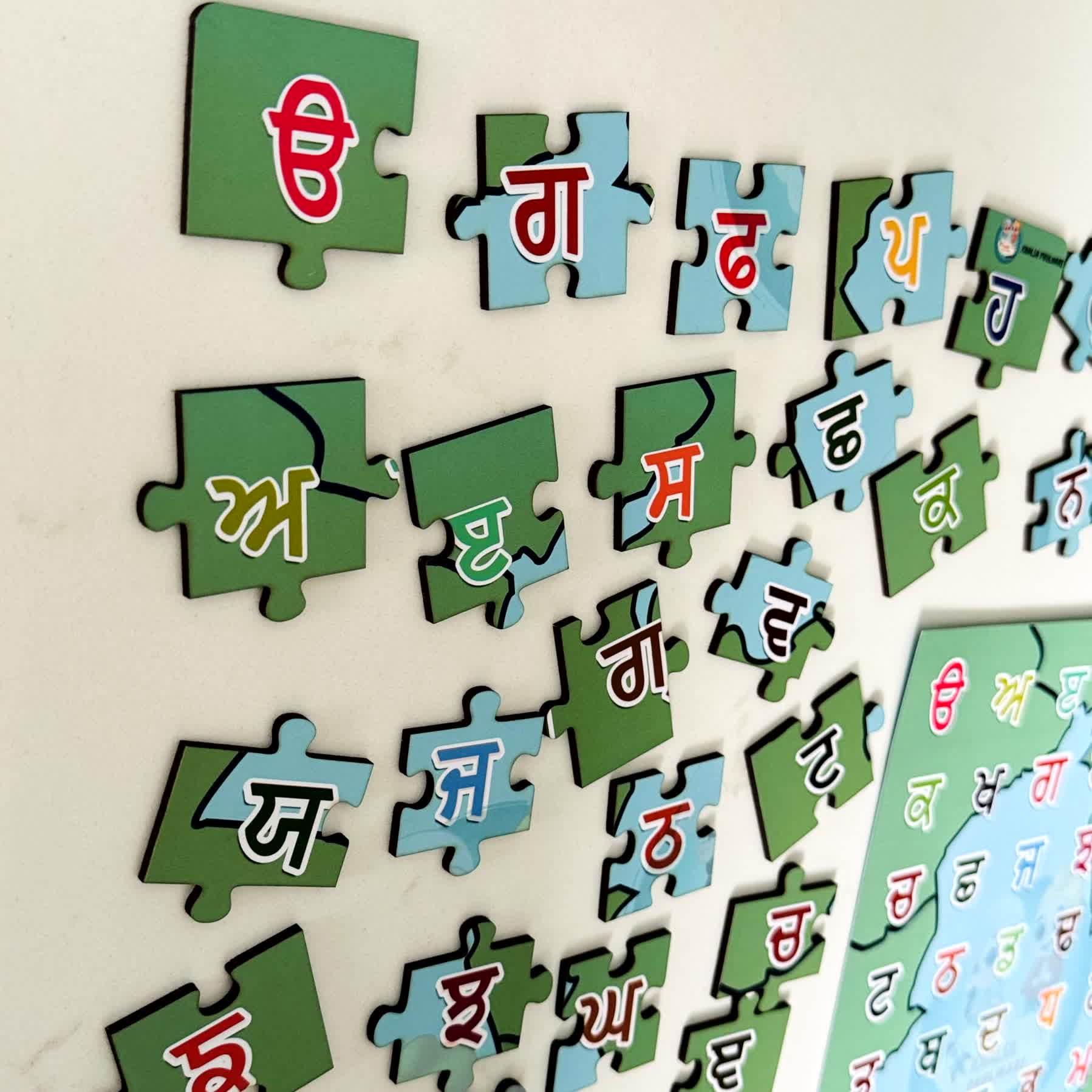 Introducing the Punjabi Alphabet Puzzle, a unique and engaging educational tool designed to help children and adults alike learn the Punjabi language in a fun and interactive way. This product is not just a puzzle, but an innovative learning resource that combines entertainment and education seamlessly.