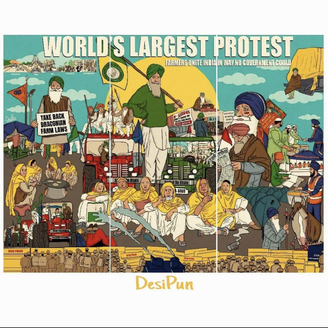 We were inspired by this artwork by DesiPun which was dedicated to the real-life experiences of the world’s largest protest happening currently in India & spread across diaspora. So inspired, that we had to collaborate with them so that we could bring these awesome products to our audience in the West.